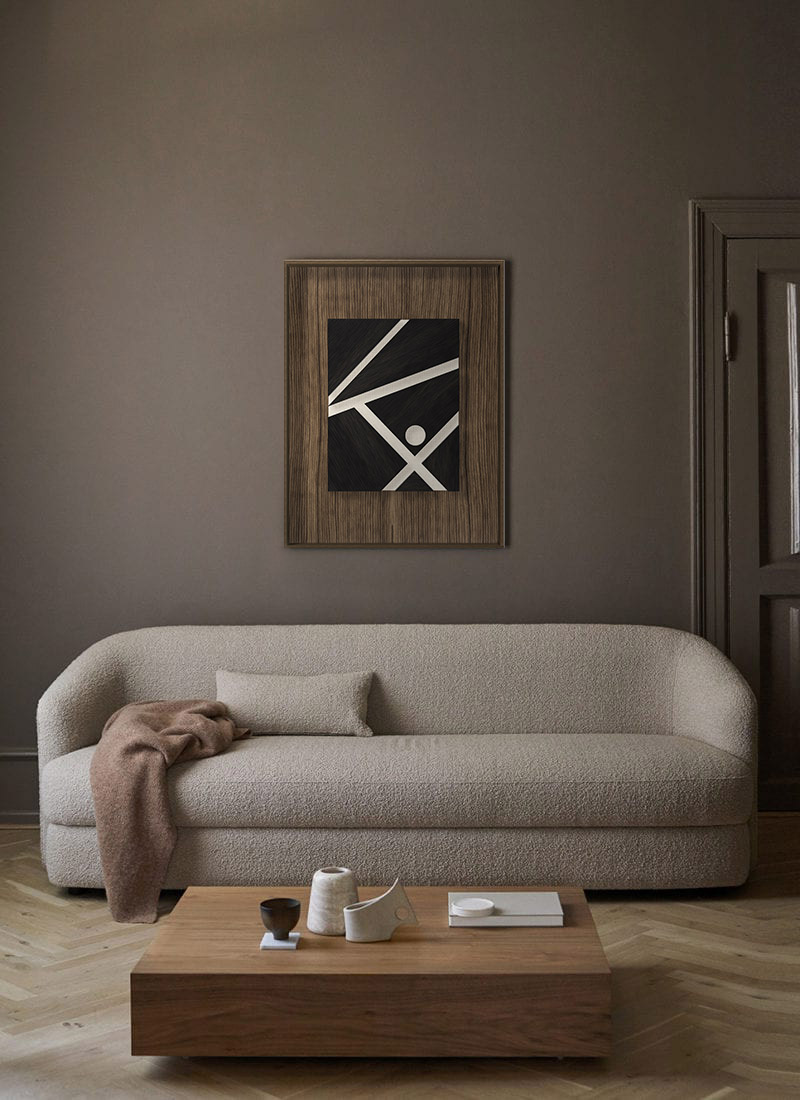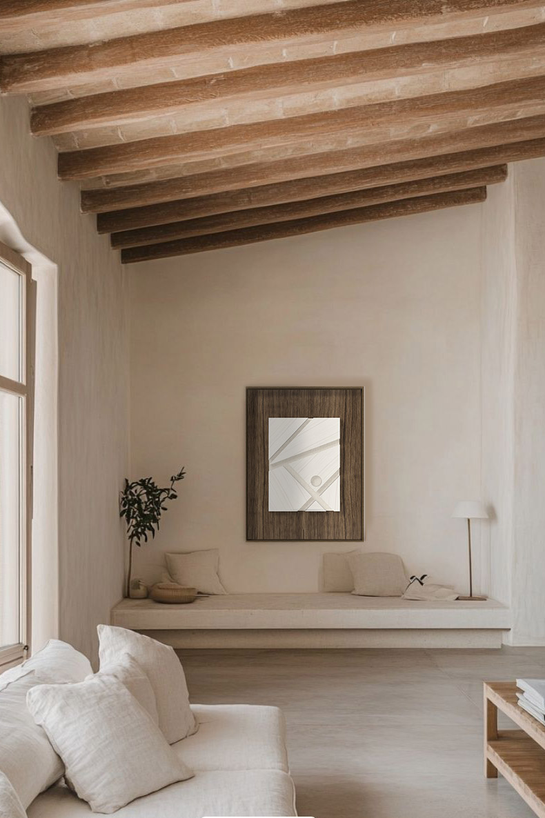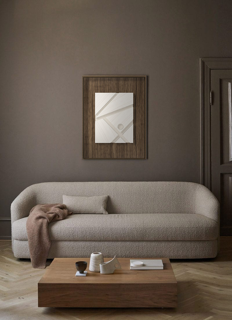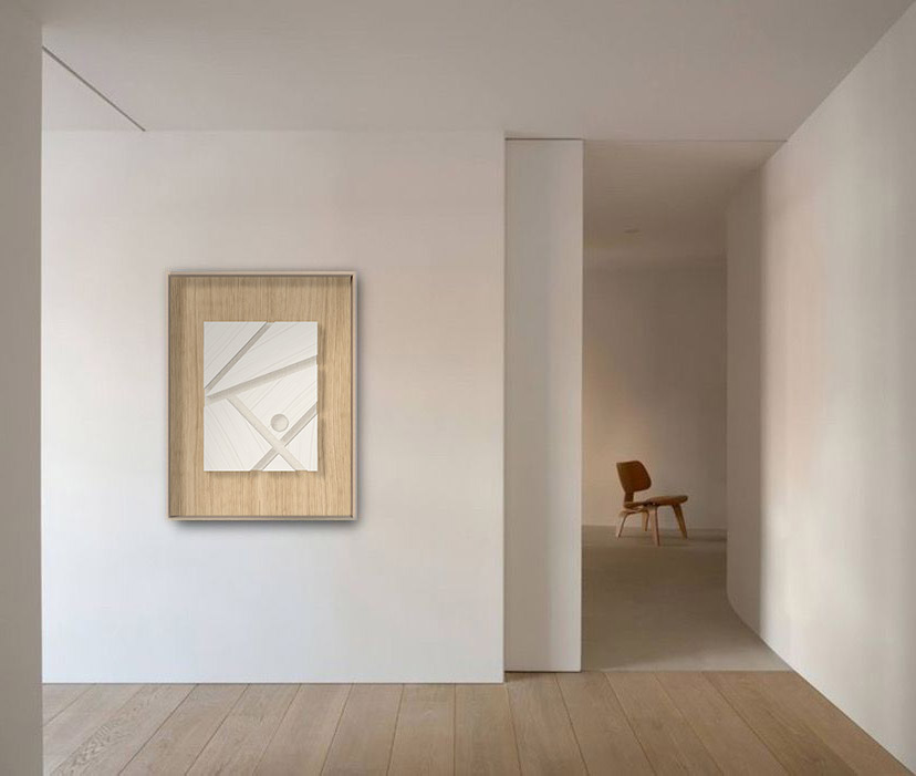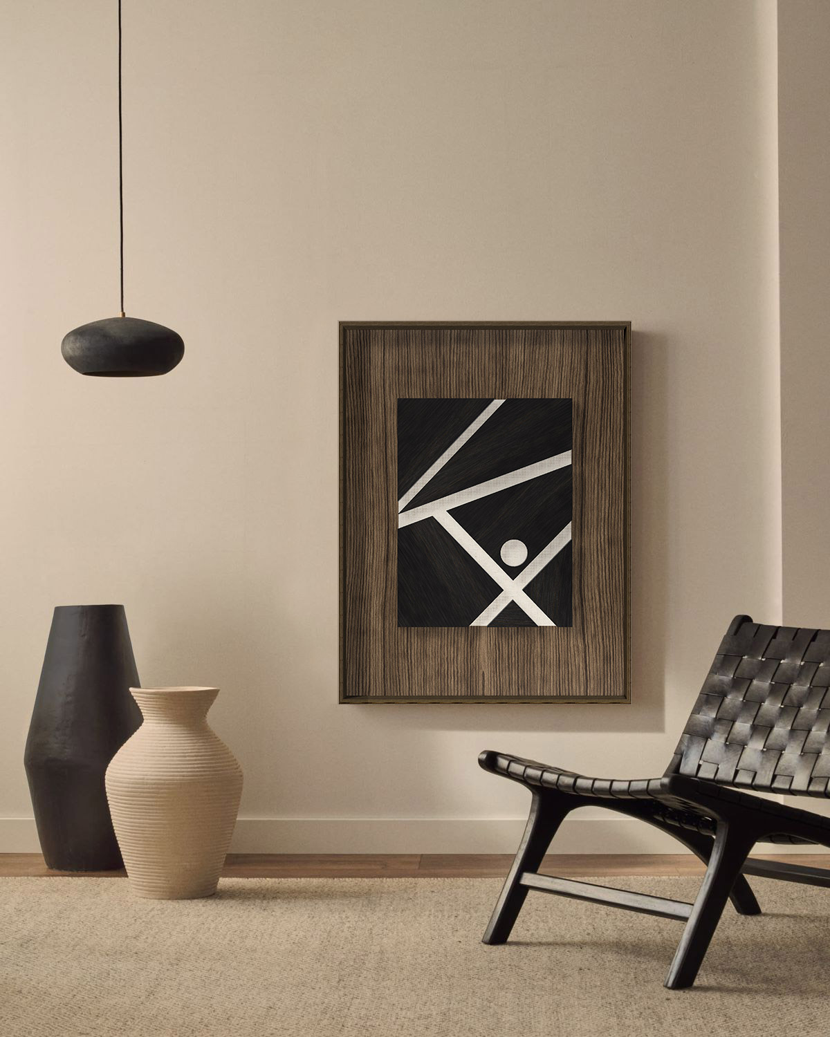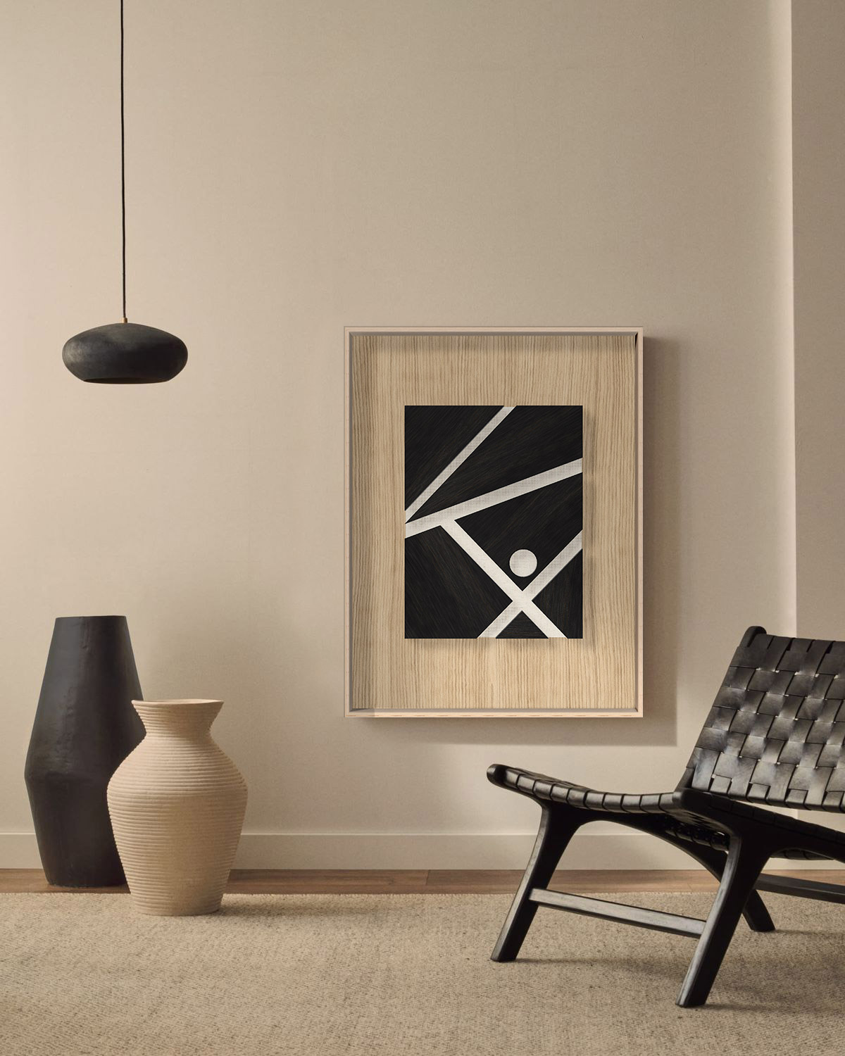 • Marco tipo caja de madera natural contrachapada rechapada, que aporta naturalidad y contraste.