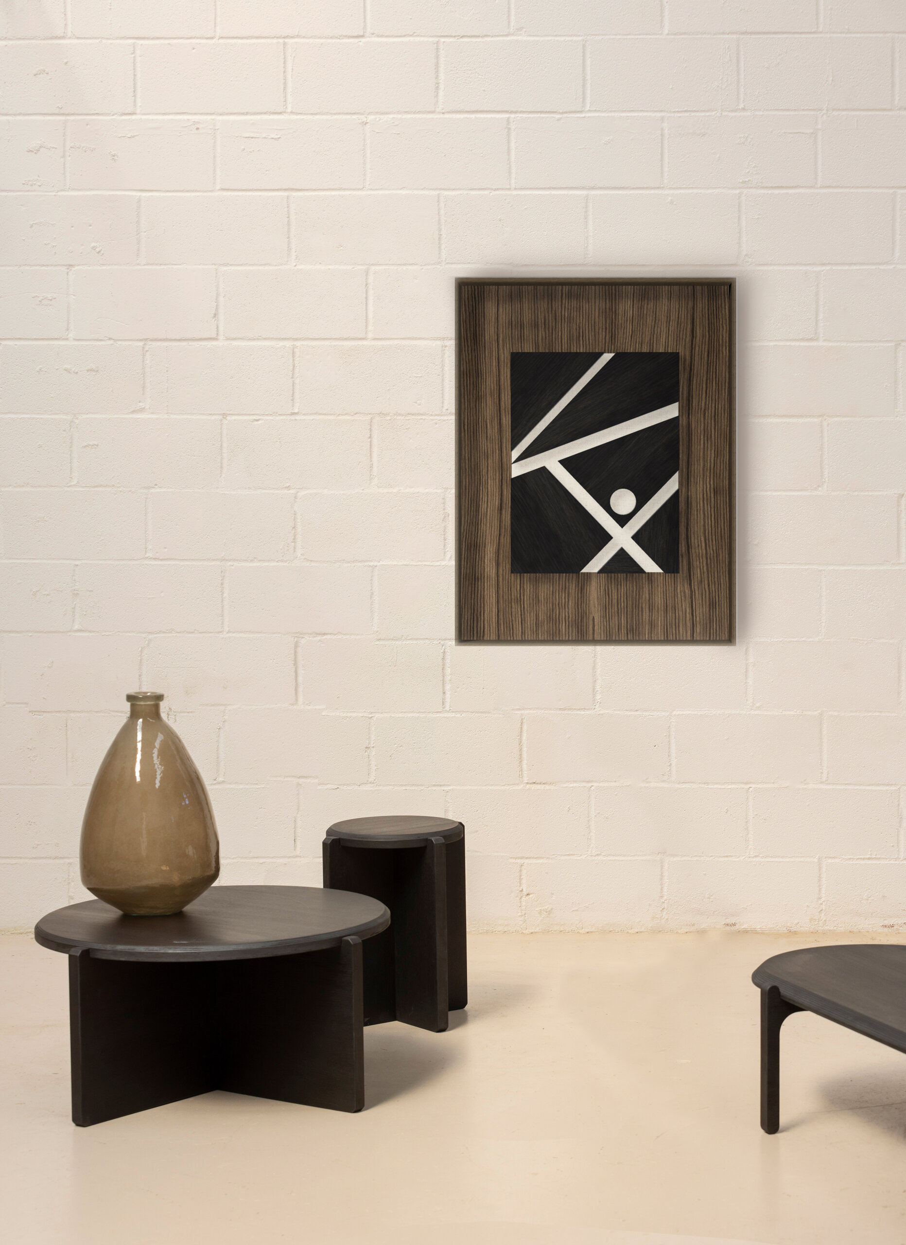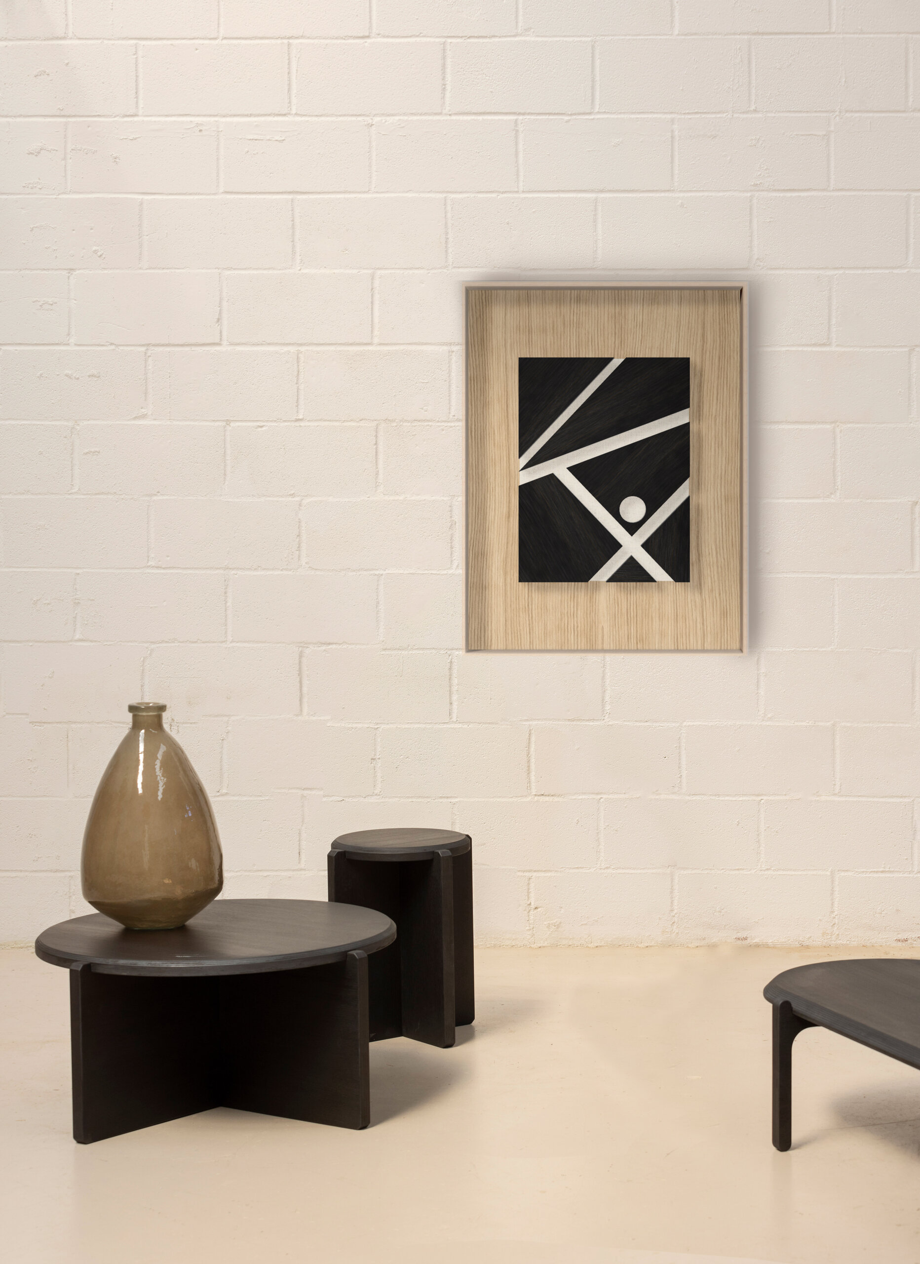Esta obra forma parte de la serie Cities, un homenaje a la belleza del urbanismo en las grandes metrópolis. Inspirada en Barcelona, está realizada en madera, donde la calidez del material dialoga con la precisión geométrica del trazado urbano. La retícula ortogonal diseñada por Cerdà se ve interrumpida por la poderosa Diagonal, eje que define la identidad de la ciudad. La figura circular alude a La Monumental un hito histórico y cultural que se integra en el tejido urbano.